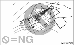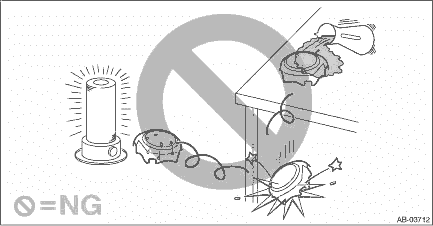 • Observe the following; the airbag system component or the internal parts of seat belt pretensioner may be damaged or the reliability may be greatly lowered. – Do not drop or otherwise apply impact. – Do not store under the condition at high temperature of 85°C (185°F) or more, or expose to flame. – Do not allow water, oil or grease to come in contact.