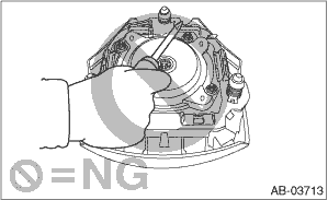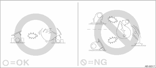 • When storing a removed airbag module, observe the following items. If the pad of the airbag module is in contact with other objects, it may cause a serious accident if the airbag accidentally operates. – Do not place the airbag module with the pad side facing downward. – Do not place any objects on the airbag module. – Do not pile up the airbag module. • Driver’s airbag module