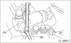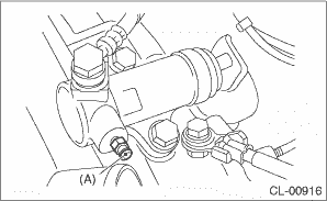 6. Slowly depress the clutch pedal several times and keep it depressed. Then open the air bleeder to discharge air together with the brake fluid. Release the air bleeder for 1 or 2 seconds. Next, close the air bleeder, and slowly release the clutch pedal. CAUTION: Cover the air bleeder with cloth to prevent brake fluid from being splashed on surrounding parts when loosening the bleeder.