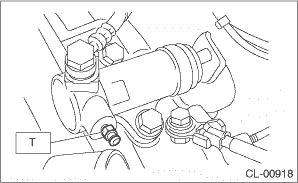 7. Repeat procedure 6), until there are no more air bubbles appearing from the air bleeder. 8. Tighten the air bleeder. Tightening torque: T: 7.8 N·m (0.8 kgf-m, 5.8 ft-lb)