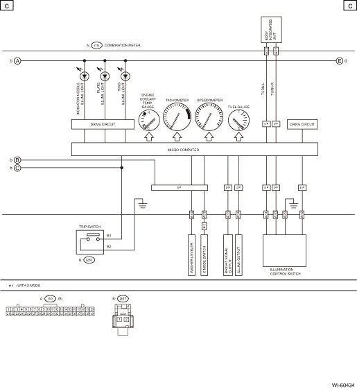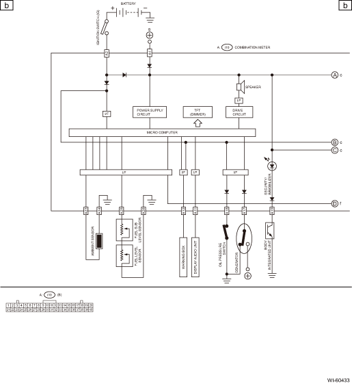 CAUTION:When the combination meter is replaced, perform the variant work. Combination Meter System > OPERATION1. Disconnect the ground terminal from battery sensor. NOTE2. Release the lock, tilt the steering column to the lowest end and fully extend the column by the telescopic system.3. Remove th ...