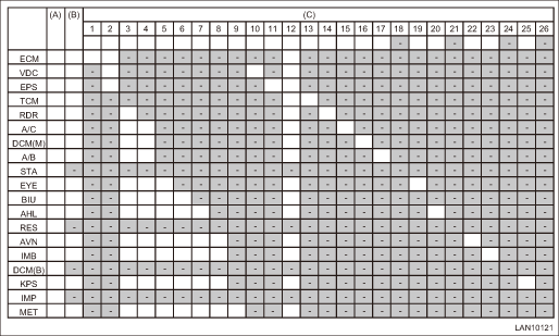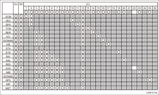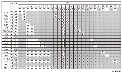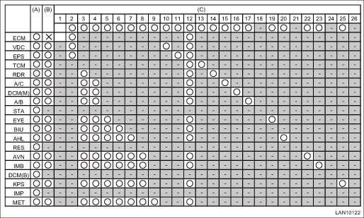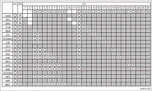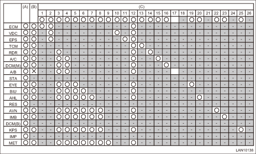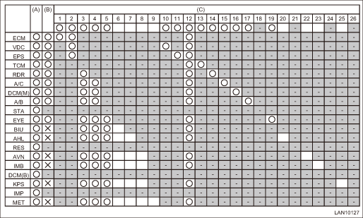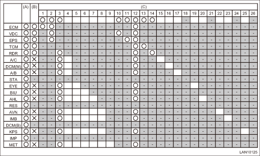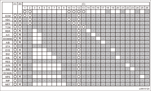 • When No. 12 is open NOTE: Perform inspection by referring to 3) communication initialization check (impossible to communicate with all modules). (There may be a malfunction other than open circuit)