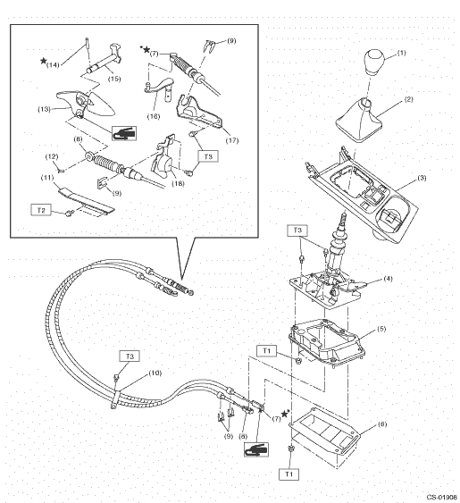*: Always use new MT gear select cable if the cable is removed from select lever COMPL of transmission side. | ||||||||||||||||||||||||||||||||||||||||||||||||||||||||||||||||||||||||||||||||||||||||||