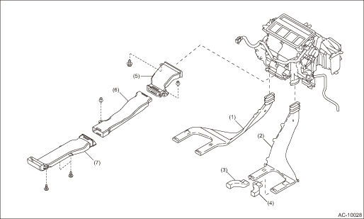 (1) | Duct - rear heater LH | (4) | Duct - extension RH | (6) | Duct - console center | (2) | Duct - rear heater RH | (5) | Duct - console front | (7) | Duct - console rear | (3) | Duct - extension LH | | | | |