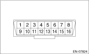 This connector is used for Subaru Select Monitor. CAUTION: Do not connect any scan tools other than Subaru Select Monitor or general scan tool because the circuit for Subaru Select Monitor may be damaged.