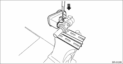 1. CONSOLE1. Disconnect the ground terminal from the battery sensor, and wait for at least 60 seconds before starting work. NOTE2. Remove the cover assembly - front and the console box assembly. Console Box > REMOVAL3. While releasing the claw inside, press it in from the rear to remove the socket ...