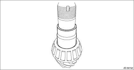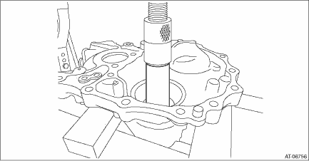 4. Using the round bar with diameter of 36 mm (1.42 in) or 37 mm (1.46 in), remove the bearing inner race and plug.