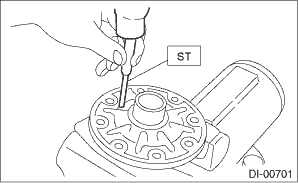 8. Remove the oil seal and O-ring from the side retainer. 9. When replacing the side bearing, remove the bearing race from the side retainer using ST.