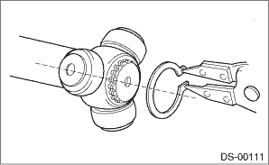 9. Remove the snap ring and trunnion. CAUTION: Be sure to wrap shaft splines with vinyl tape to protect the boot from scratches.