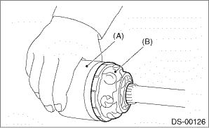 5. Take out the DOJ outer race from the shaft assembly. 6. Wipe off the grease and take out the ball bearings. CAUTION: The grease is a special grease (grease for constant velocity joints). Do not mix with other greases. NOTE: Disassemble the parts taking care not to lose balls.