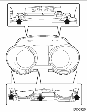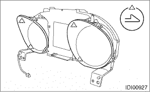 CAUTION: • Use gloves to avoid damage and putting fingerprints on the lens surface and meter surfaces. • Be sure not to touch the meter indicator needle. • Because LEDs are used for all of warning lights and indicator lights, they are not removable from the meter - main assembly. 1. Remove the screws, and then remove the outer mask. Preparation tool: TORX® T10