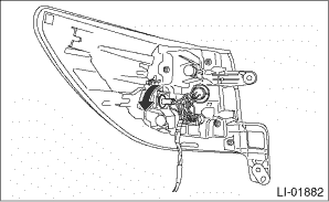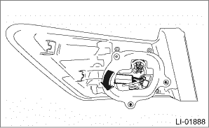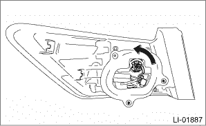 CAUTION: Use a dry clean cloth so that no grease or water adheres to the glass portion of the bulb. 1. TAIL LIGHT/STOP LIGHT BULB NOTE: Since the LED type is a non-disassembled part, it cannot be removed. 2. TURN SIGNAL LIGHT BULB Rotate the bulb socket in the direction of arrow shown in the figure to remove the turn signal light bulb. • Sedan model
