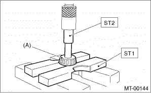 2. Using ST1 and ST2, remove the taper roller bearing (transfer case side).