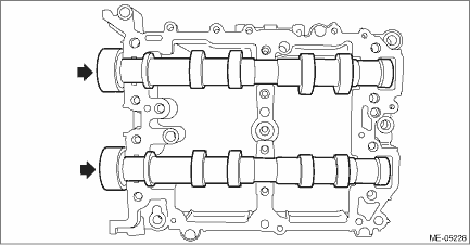 2. Remove the intake camshaft RH and the exhaust camshaft RH from cam carrier RH.