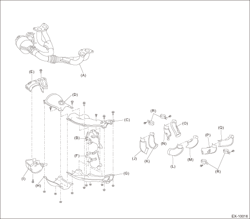 1. Remove the front oxygen (A/F) sensor and rear oxygen sensor from front exhaust pipe. Front Oxygen (A/F) Sensor > REMOVAL Rear Oxygen Sensor > REMOVAL 2. Remove the center exhaust pipe from the front exhaust pipe.