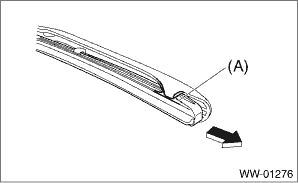 2. REAR Slightly pull the top of the rubber assembly - rear wiper from the stopper (A), and pull out completely.