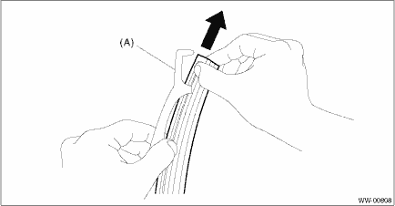 1. FRONT Pull side (A) of the wiper rubber stopper, and remove the rubber assembly - windshield wiper from the blade assembly - windshield wiper.