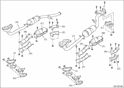 1. Separate the front exhaust pipe (RH) from the front exhaust pipe (LH).