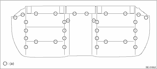 12. Remove the pad assembly - main from the frame assembly - rear backrest. 13. Remove the seat heater module from the pad assembly as necessary. CAUTION: • If the seat heater module is removed, replace the pad assembly with a new part. • If the seat heater module is reused, remove the polyurethane section from the reverse side completely. 14. Referring to the above steps, disassemble the backrest assembly RH. 15. Remove the hog rings (a) on the back side of the rear seat cushion assembly.
