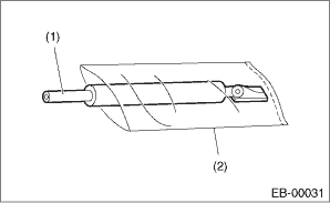 1. REAR GATE DAMPER STAY CAUTION: Gas is colorless, odorless, and harmless. However, gas pressure may spray cutting powder or oil. Be sure to wear dust-resistant goggles. 1. Cover with a vinyl sack as shown in the figure.