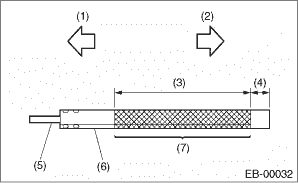 NOTE: Prevent the vinyl sack from being caught by drill cutting edge. 2. Lift the body side slightly with piston rods fully extended, and secure the body side with vise. Drill a hole of 2 to 3 mm (0.08 to 0.12 in) diameter at a point 6 to 196 mm (0.24 to 7.72 in) from the body side, and bleed the gas in the rear gate damper stay completely.