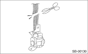 14. Remove the seat belt outer - front. Front Seat Belt > REMOVAL 15. Cut the seat belt at a position as close as possible to the seat belt retractor.
