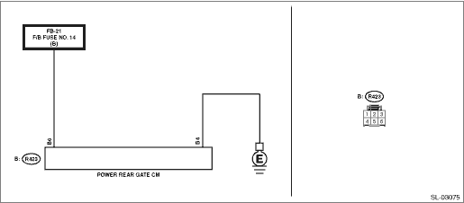 6.CHECK CONNECTOR. Disconnect the PRG CM connector (R423). | Is there poor contact of connector- | Repair or replace the poor contact of connector. | Replace the PRG CM. Power Rear Gate Control Module |
