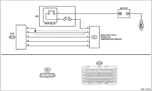 DTC DETECTING CONDITION: Immediately at fault recognition TROUBLE SYMPTOM: • Improper idling • Poor driving performance CAUTION: After servicing or replacing faulty parts, perform Clear Memory Mode Clear Memory Mode > OPERATION, and Inspection Mode Inspection Mode > PROCEDURE. WIRING DIAGRAM: • Engine Electrical System ENGINE TYPE FB (WITHOUT PUSH BUTTON START) Engine Electrical System > WIRING DIAGRAM • Engine Electrical System ENGINE TYPE FB (WITH PUSH BUTTON START) Engine Electrical System > WIRING DIAGRAM