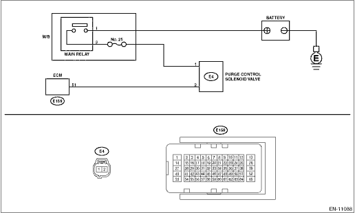 1. OUTLINE OF DIAGNOSIS Detect open or short circuit of the purge control solenoid valve. Judge as NG when the ECM output level differs from the actual terminal level. 2. COMPONENT DESCRIPTION