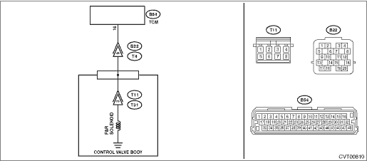 DTC DETECTING CONDITION: Detected when two consecutive driving cycles with fault occur. TROUBLE SYMPTOM: • Engine speed increases abruptly, and can not accelerate. • Excessive slippage is felt. 1. ENGINE TYPE FB WIRING DIAGRAM: CVT control system CVT Control System > WIRING DIAGRAM