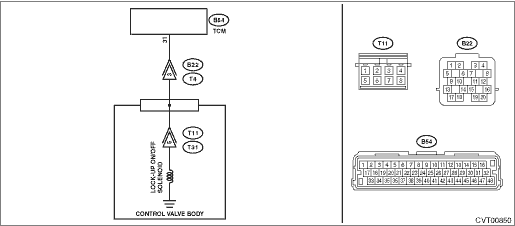 DTC DETECTING CONDITION: Immediately at fault recognition TROUBLE SYMPTOM: No lock-up occurs. WIRING DIAGRAM: CVT control system CVT Control System > WIRING DIAGRAM
