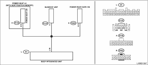 5.CHECK HARNESS (OPEN CIRCUIT). 1) Turn the ignition switch to OFF. 2) Disconnect the body integrated unit connector. 3) Measure the resistance between body integrated unit connector and each unit connector. Connector & terminal (i81) No. 18 — (R422) No. 10: (i81) No. 18 — (R155) No. 12: (i81) No. 18 — (R125) No. 11: | Is the resistance less than 10 -- | Diagnostic Procedure with Diagnostic Trouble Code (DTC) > DTC U1673 LIN COMMUNICATION BUS ERROR BODY CONTROL MODULE | Repair the open circuit of harness. |