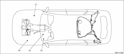(1) | Front oxygen (A/F) sensor | (3) | Rear oxygen sensor | (4) | Rear catalytic converter | (2) | Front catalytic converter | | | | |