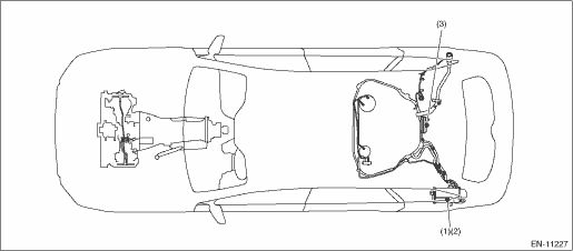 (1) | Fuel level sensor | (2) | Leak check valve ASSY (with built-in pressure sensor) | (3) | Fuel sub level sensor |