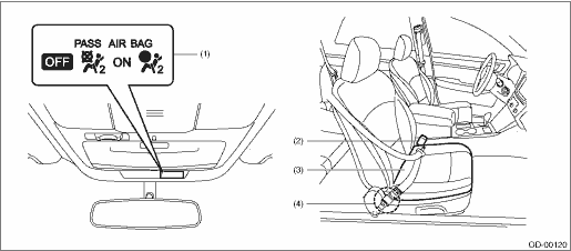 (1) | Airbag ON/OFF indicator light | (3) | Seat cushion & frame ASSY (occupant detection control module & occupant detection sensor) | (4) | Belt tension sensor | (2) | Buckle switch (passenger’s seat) | | | | |
