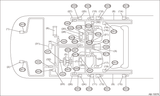 Connector No. | (AB1) | (AB2) | (AB5) | (AB6) | (AB7) | (AB9) | (AB13) | (AB16) | (AB17) | (AB18) | (AB19) | (AB21) | Pin | 2 | 4 | 2 | 28 | 4 | 4 | 2 | 2 | 22 | 22 | 2 | 2 | Color |