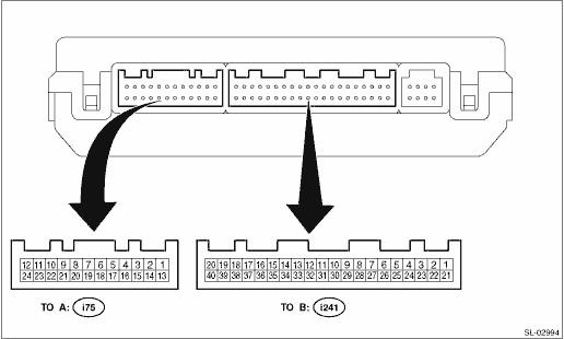 (i241) No. 31 ←> Chassis ground (except for MT model) | Stop light switch input | Brake pedal depressed > released | 9.5 V or more > 1 V or less |