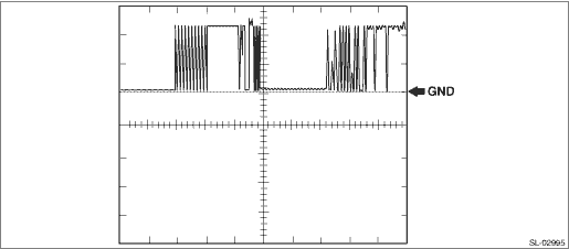 Turn the ignition switch to OFF and with the access key near the push button ignition switch, press the push button ignition switch. (with the access key battery removed) | Waveform 3 |