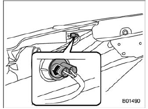 1. Disconnect the ground terminal from battery sensor. NOTE2. Remove the trunk trim panel assembly - side on the RH side. (Sedan model) Rear Quarter Trim > REMOVAL3. Remove the right side rear quarter trim. (OUTBACK model) Rear Quarter Trim > REMOVAL4. Remove the fuel pump control unit.• Se ...