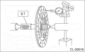 4. Deflection on facing If deflection exceeds the specified value at the outer circumference of the facing, replace the clutch disc.
