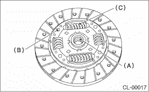 5. If there is spline wear, loose rivets, failed damper springs, etc., replace the clutch disc.