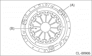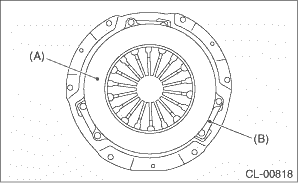 2. CLUTCH COVER NOTE: Visually check the following items without disassembling, and replace or repair if defective. 1. Loose thrust rivet 2. Damaged or worn bearing contact area at the center of diaphragm spring