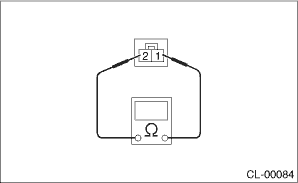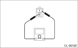 2. When the clutch switch does not operate normally even if the clutch stroke and installation condition are normal, check the clutch switch for continuity. (1) Remove the clutch switches. Clutch Switch > REMOVAL (2) Measure the resistance between terminal 1 and 2 of the switch. If the resistance is not at the standard value, replace the switch.