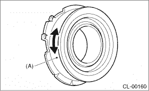 1. RELEASE BEARING CAUTION: Since this bearing is grease-sealed and is a non-lubrication type, do not wash with gasoline or any other solvent when servicing the clutch. 1. Check the bearing for smooth movement by applying force to the bearing in the radial direction. Radial direction stroke: 1.6 mm (0.063 in)