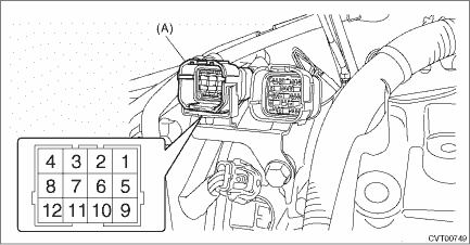 7. Check for continuity in inhibitor switch circuit by shifting the select lever in “P”, “R”, “N” and “D” respectively. NOTE: • Check that there is no continuity in the starter circuit when the select lever is in the “R” and “D” ranges. • When inhibitor switch is normal, check there is no poor contact in vehicle side connector and no open circuit in harness.