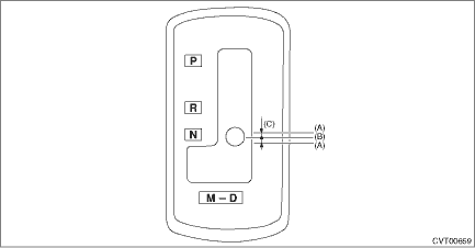 9. Repeat the above inspection in other gear ranges. If there is fault, adjust the inhibitor switch and select cable. Inhibitor Switch > ADJUSTMENT Select Cable > ADJUSTMENT |