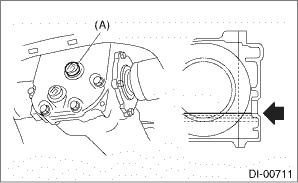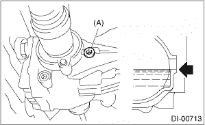 1. Lift up the vehicle. 2. Remove the filler plug, and then check the gear oil. Replace the gear oil if it is contaminated, deteriorated or cloudy. Differential Gear Oil > REPLACEMENT 3. Check that the gear oil level is within −5 mm (−0.2 in) from the bottom of the filler plug hole. If the level is low, make sure that there is no oil leakage and refill up to the bottom of filler plug hole. NOTE: On VA1-types at factory settings, the oil level may be within −14 mm (−0.6 in) from the bottom of the filler plug. This is at normal level, requiring no oil refill. • T-type