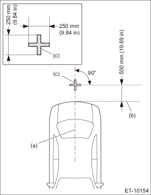 1. Park the vehicle at a level place where there are enough area at the rear of the vehicle. 2. Attach the tape as the target point for standard at the floor rearward of the vehicle as shown in the figure below. NOTE: Standard tape width is about 30 — 50 mm (1.18 — 1.97 in) and brilliant color shall be used.