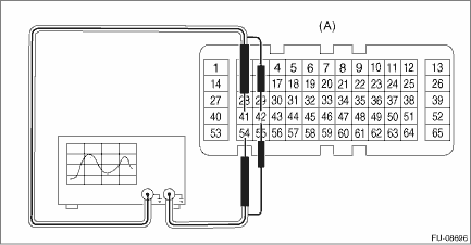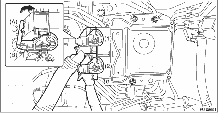 1. CAMSHAFT POSITION SENSOR 1. Disconnect the ground terminal from battery sensor. NOTE 2. Prepare an oscilloscope. 3. While pressing the section (A) shown in the figure, move the lock lever (B) in the direction of the arrow to disconnect the connectors from the ECM in numerical order as shown in the figure.