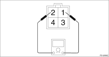 1. Check that the front oxygen (A/F) sensor has no deformation, cracks or other damages. 2. Measure the resistance between front oxygen (A/F) sensor terminals. Terminal No. | Standard | 1 and 2 | 2.0+0.42 −0.2 - (when 20°C (68°F)) |